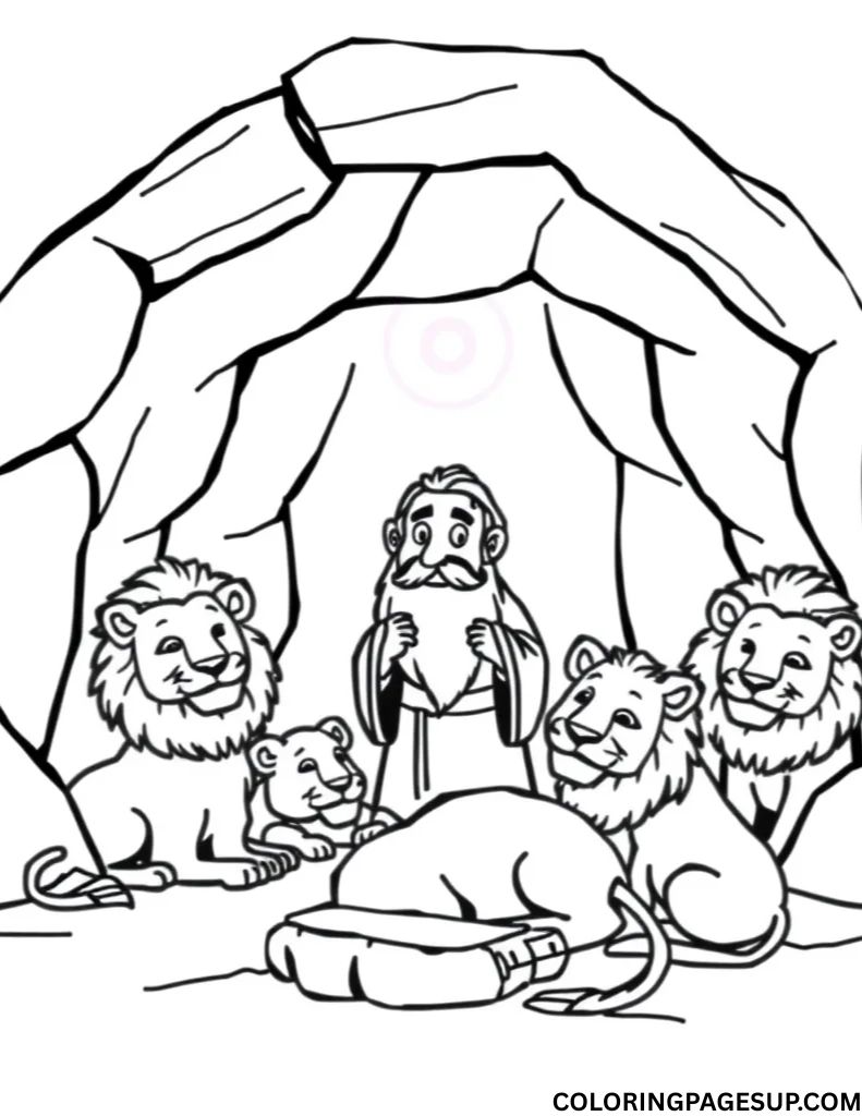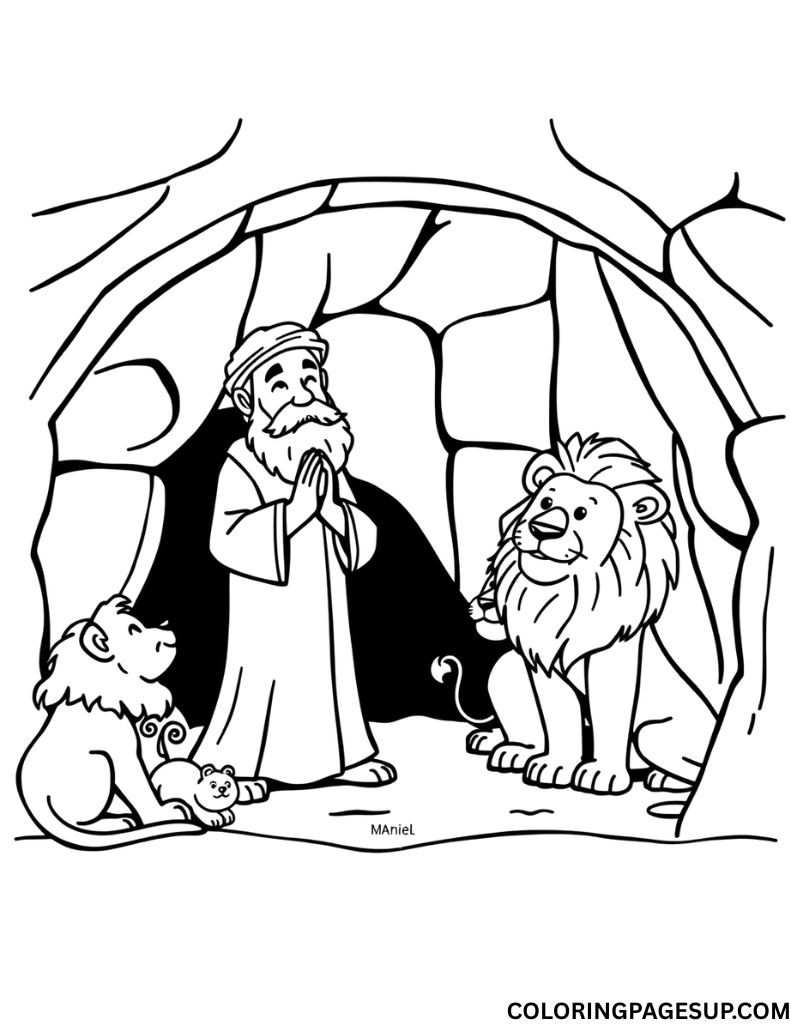 Daniel and the Lions’ Den Coloring Sheet (Printable Free PDF)