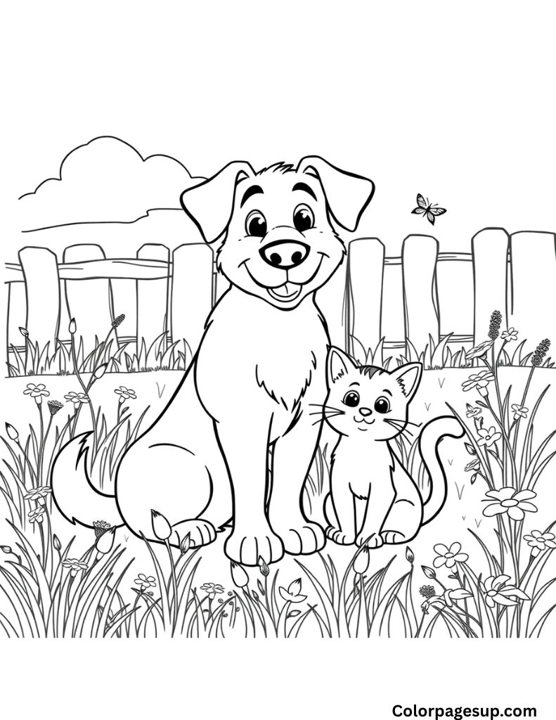 Cute Dog And Cat Coloring Pages