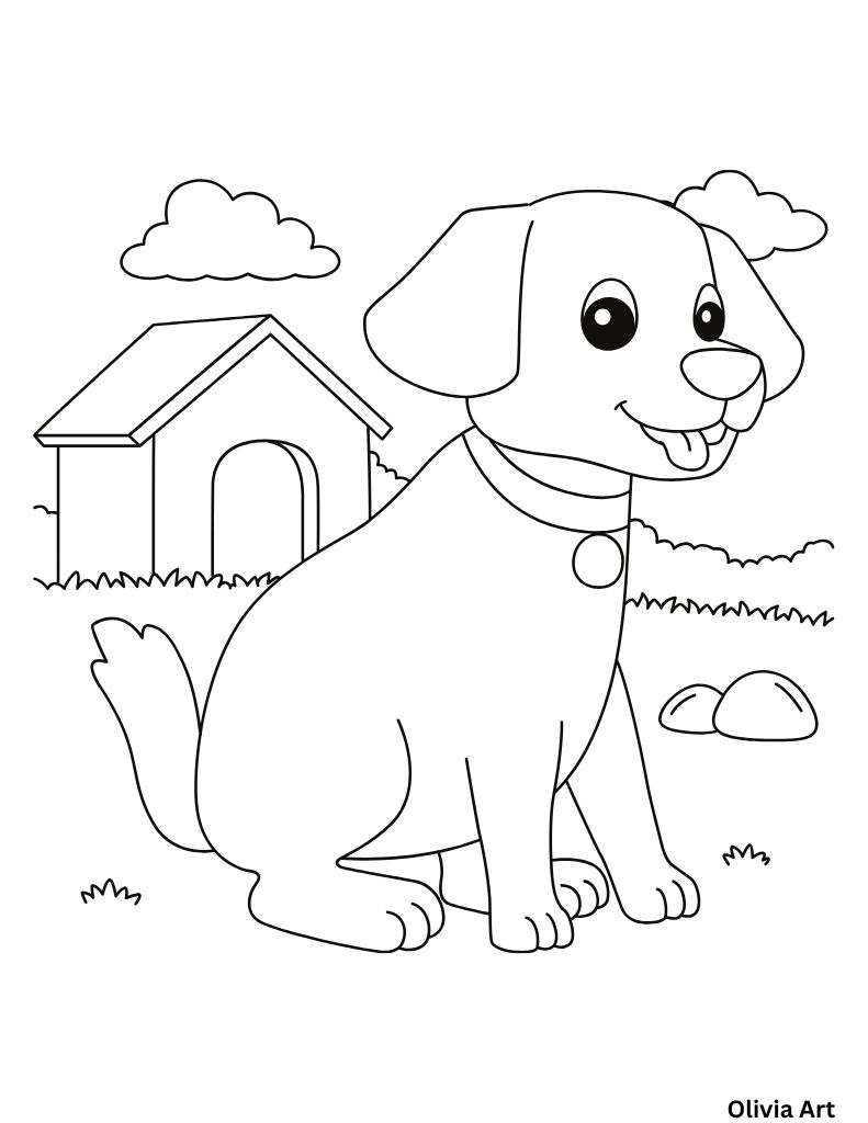 Use a dog coloring page as a fun background for a pretend “adopt a pet” activity. Great for classrooms and parties.